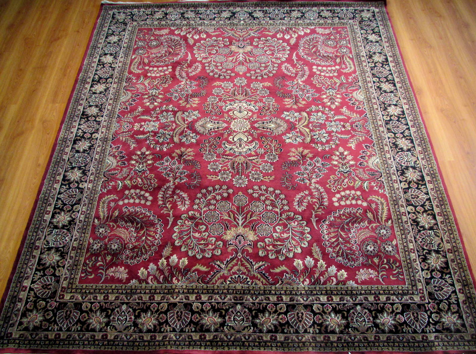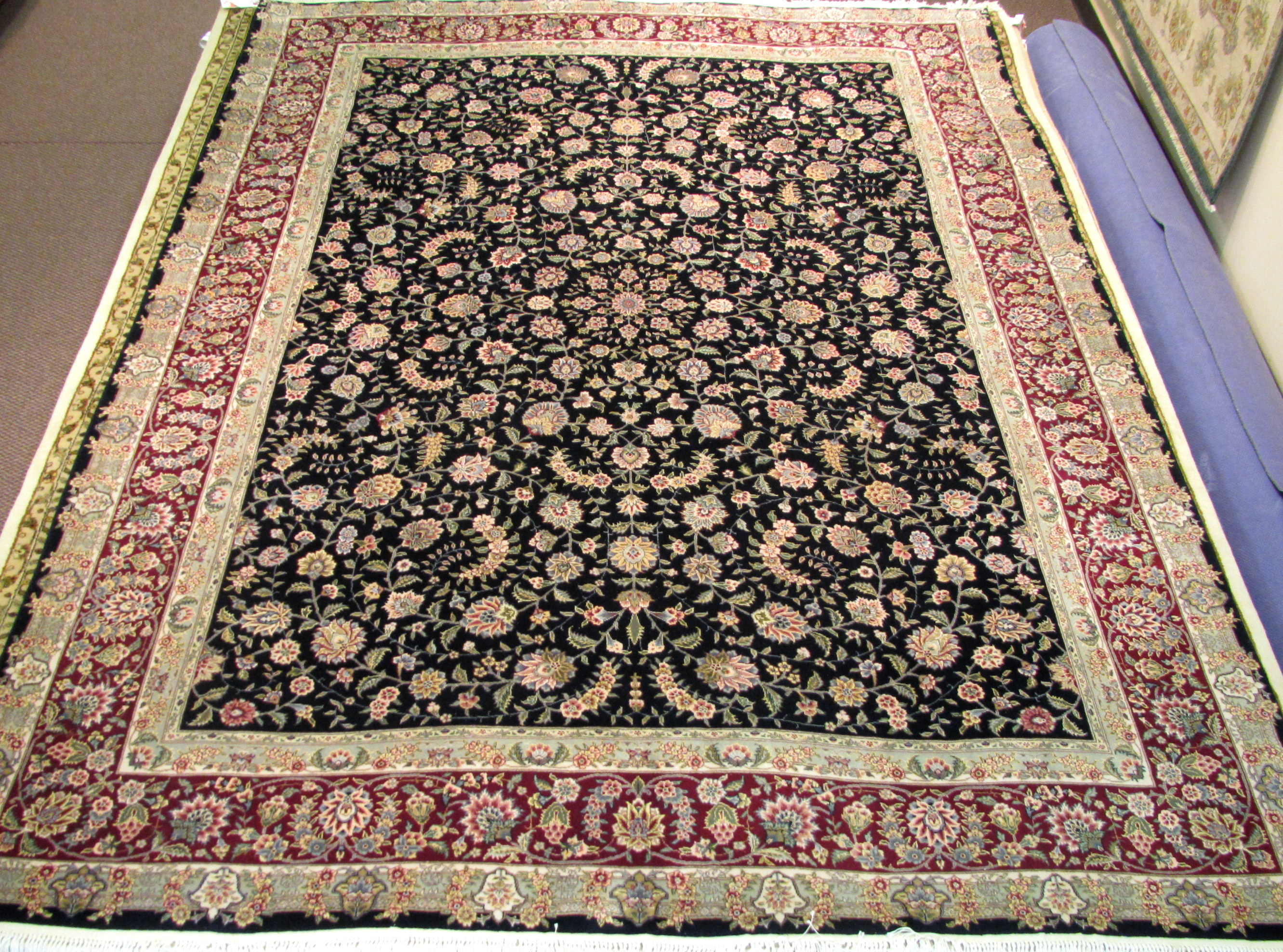 12/60 Sarouk Silk Tch Burg/Blk 8x10,6x9 # T4